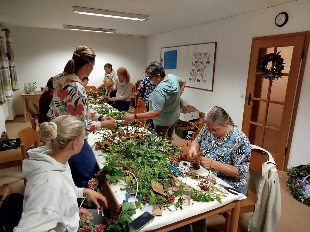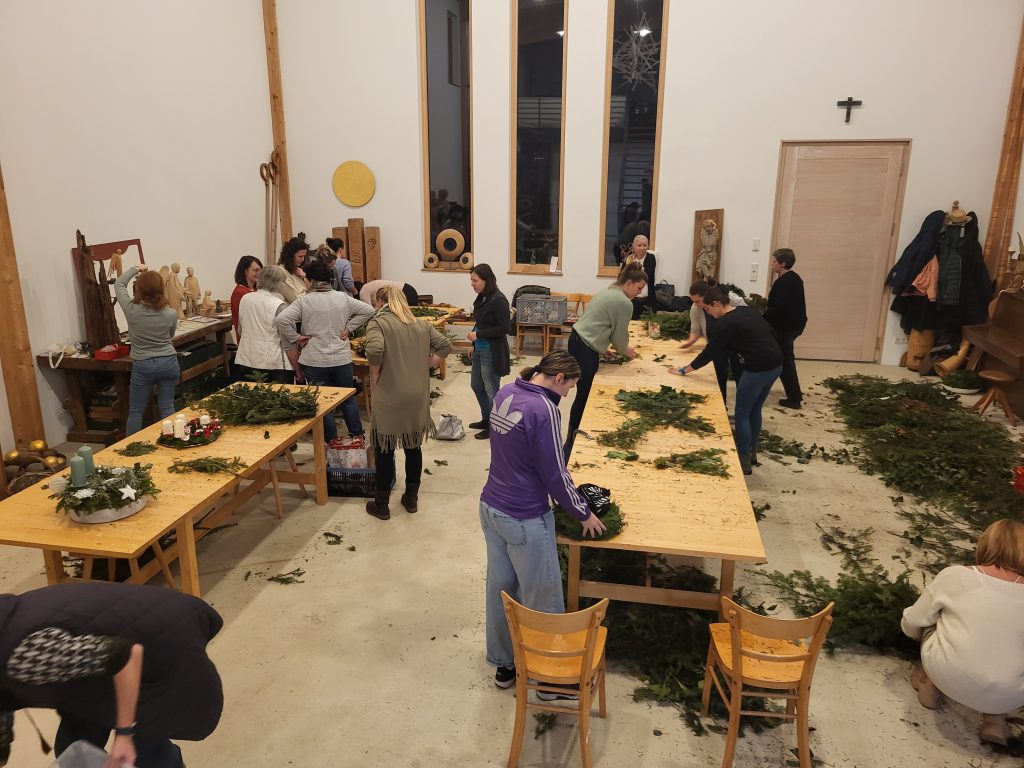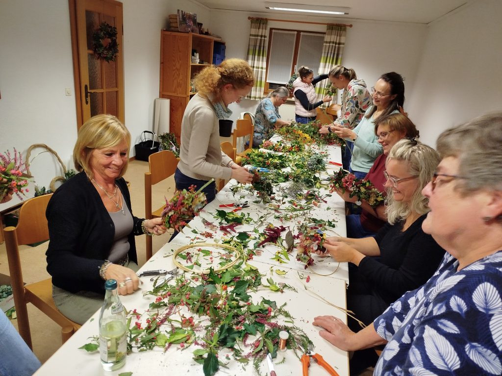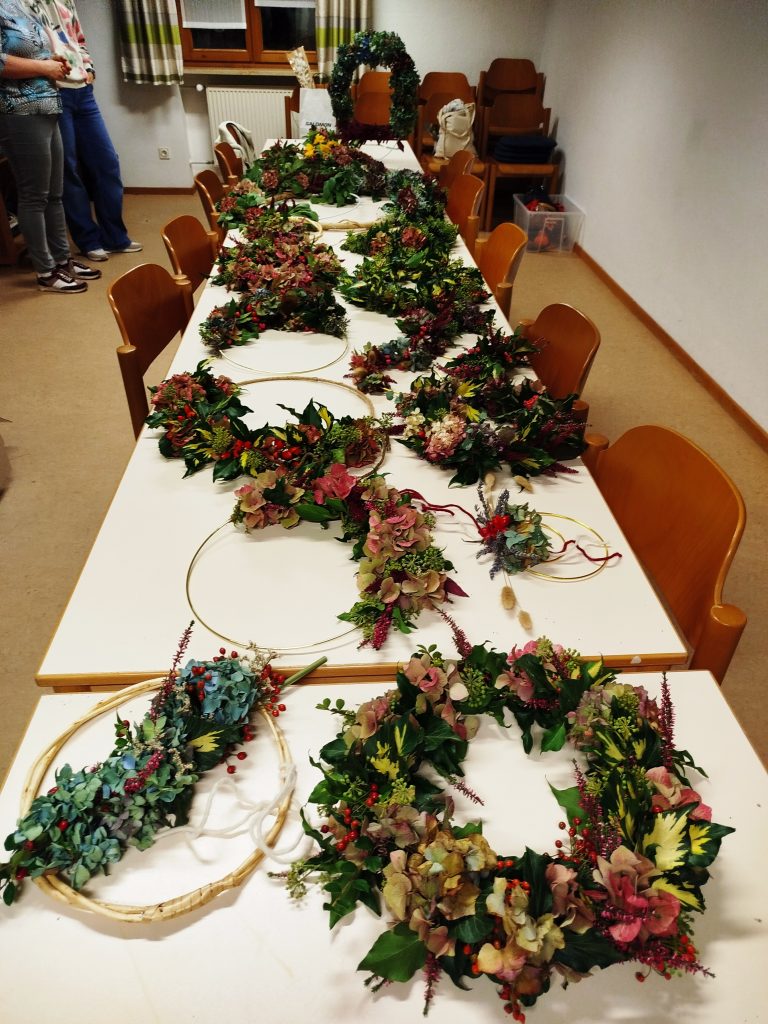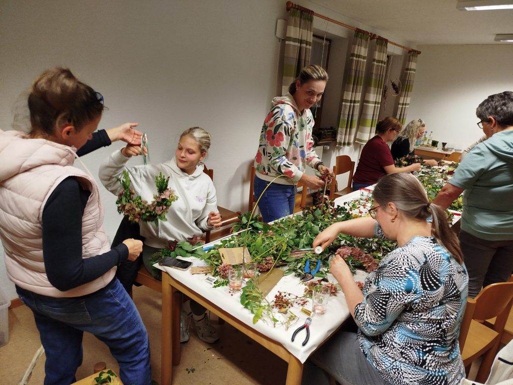 In vorweihnachtlicher Stimmung trafen sich knapp 20 Damen am 25.11. zu einem stimmungsvollen Abend voller Kreativität und Geselligkeit. Mit Fichte, Tanne, Efeu und vielen weiteren Zweigen entstanden ganz unterschiedliche, wunderschöne Adventskränze – jeder ein echtes Unikat. Kerzen und festlicher Weihnachtsschmuck verliehen den Kränzen ihren besonderen Glanz und sorgten für eine warme, festliche Atmosphäre.